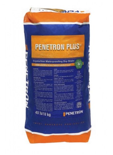 has been specially formulated for dry-shake applications on horizontal concrete surfaces where greater impact and abrasion resistance is required. Packaged in the form of a dry powder compound, PENETRON PLUS® consists of Portland cement, various active proprietary chemicals,